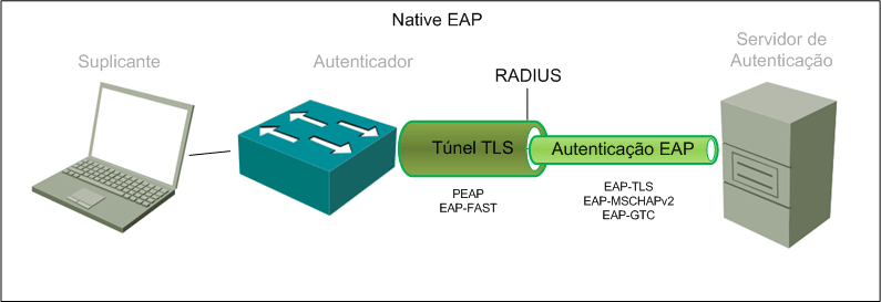 Os tipos de EAP podem ser divididos em duas categorias: ‘EAP native’ e ‘EAP tunneled’ (que usa um túnel TLS entre o suplicante e o autenticador).