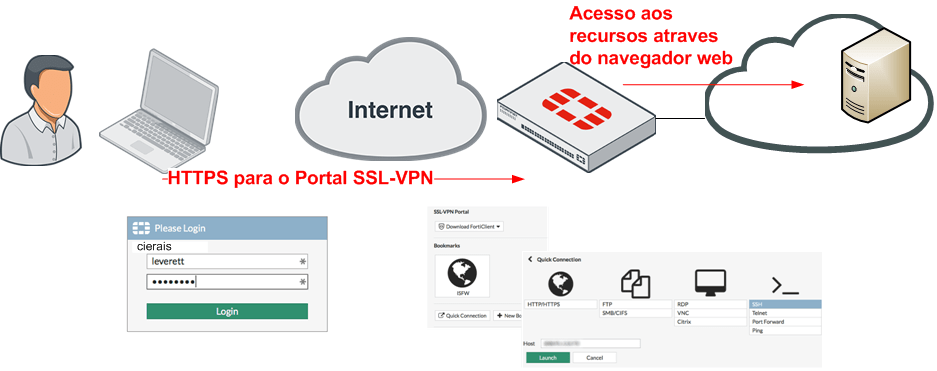 1 – Os usuários remotos estabelecem um túnel seguro ao Fortigate utilizando HTTPS.