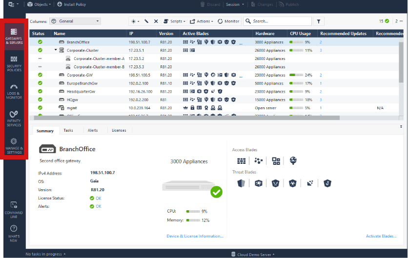 O SmartConsole pode ser instalado em um desktop, como também ser utilizado em uma versão portable ou ser acessado no modo clientless, através de browser.