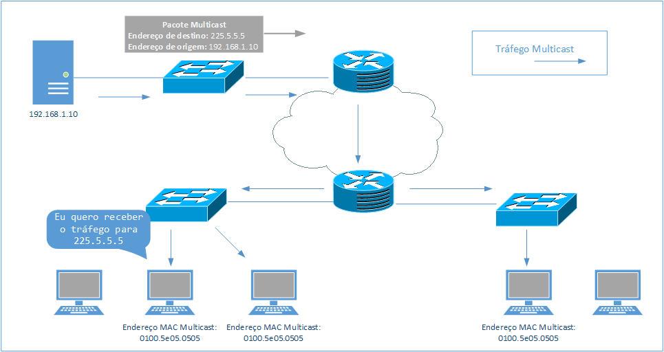 Por exemplo, o endereço 239.1.1.1 gerará o endereço MAC 0100.5e01.0101.